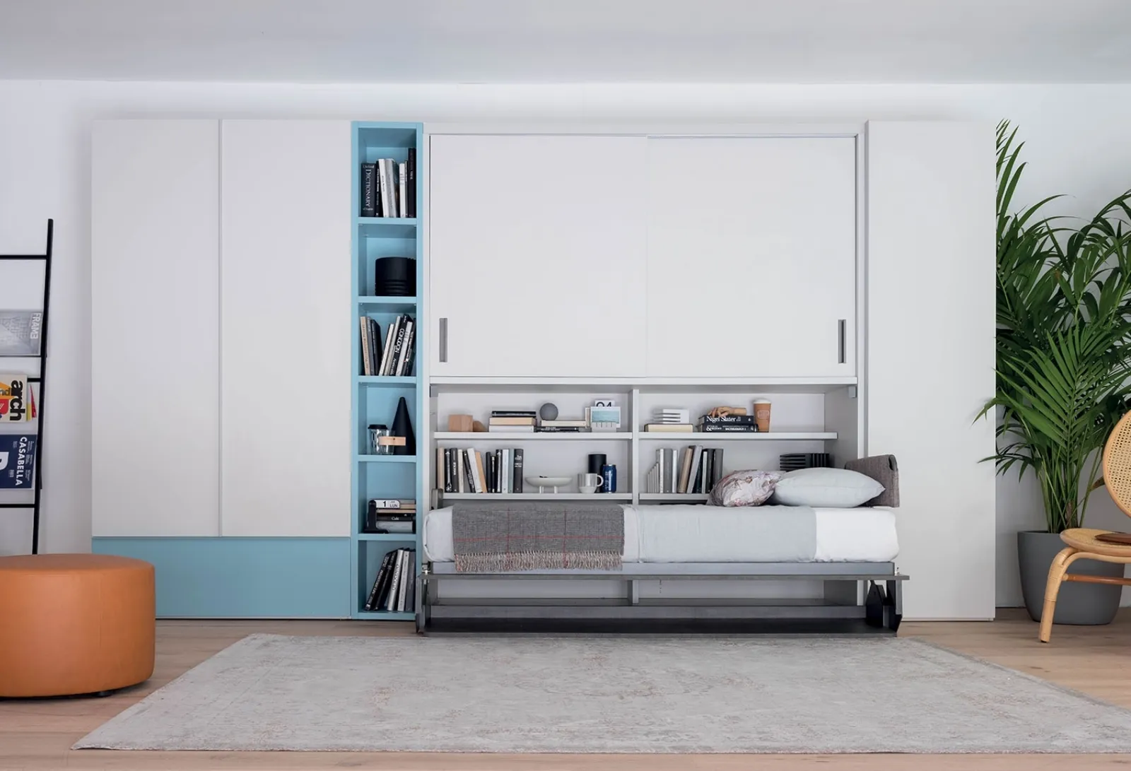 La camera è lo spazio più intimo di casa, finalizzato al relax quotidiano, perciò gli arredi devono sempre creare un'ambientazione rilassante. Il giusto tipo di letto deve seguire il tuo stile personale e una certa linea stilistica, conta solo il fatto che si adatti alle misure e funzioni dell'ambiente. I prodotti costruiti in laccato opaco dal marchio regalano alla tua camera un tocco di eleganza e charme, per uno spazio votato a un grande agio. Nel nostro punto vendita potrai vedere dal vivo le diverse soluzioni in laccato opaco di Clever, tra cui troverai anche modelli su misura trasformabili di qualità. In una camera di piccola metratura ha la sua giusta sede il Letto a scomparsa Hiro-Armadio Clever, progettato per garantire il sonno più profondo e il corretto sostegno ad ognuno.